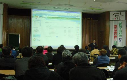 교육시간은 19~23시(4기간/일)까지로 외래강사 및 자체강사를 활용해 현장에서 바로 접목할 수 있는 사과재배기술교육을 하고 있다.