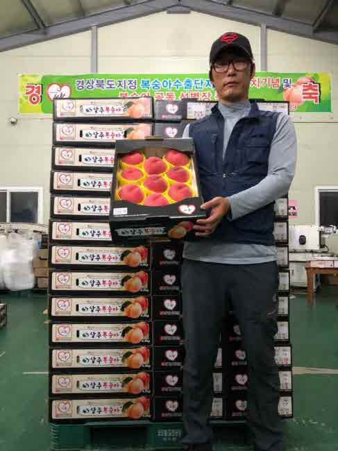 상주시 도남동의 복숭아친환경영농조합법인(대표 김재목)이 16일 프리미엄급 복숭아를 싱가포르에 시범 수출했다. 이번에 수출한 복숭아는 달고 빨간색이 선명한 데다 크기가 큰 우수 상품으로, 싱가포르의 상위 소비층을 겨냥한 것이다. 수출 물량은 프리미엄 복숭아 4.5kg짜리 40박스다. 가격은 현재 수출 중인 일반 복숭아의 약 두 배인 박스당(4.5kg) 4만원이다. 법인 관계자는 “현재 수출하는 복숭아 중 가장 높은 가격”이라며 “품질이 좋고 맛이 뛰어나 추가 주문이 들어오고 있다”고 밝혔다. 시범 수출한 복숭아는 색깔, 당도, 크기 등에서 다른 상품보다 뛰어나 상품성이 높다는 평가를 받았다.