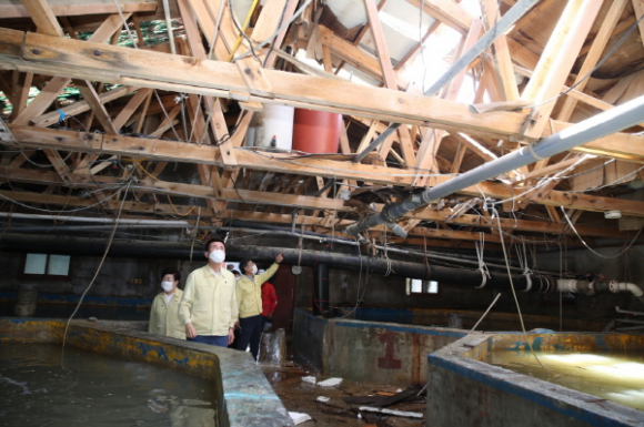 이강덕 시장도 3일 새벽부터 빗물펌프장, 죽도시장 주변도로, 구룡포 침수피해지역을 시작으로 기계·기북·죽장의 과수 낙과 피해현장, 송라·청하 해안가 마을 피해현장, 해안지역 양식장을 방문해 피해주민을 위로하고, 구룡포읍 월파 피해현장을 찾아 복구 현장을 점검했다.
