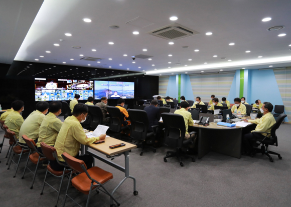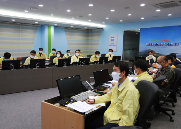 영양군은 제10호 태풍‘하이선’북상으로 인해 7일 아침부터 태풍의 직접적인 영향권에 들어설 것으로 예상됨에 따라, 관내 인명피해 제로 및 시설 피해 최소화를 위한 대처 방안 마련을 위하여 6일 오후 3시 00분 재난상황실에서 군수 주재로 태풍 대비 상황판단회의를 개최했다. 태풍 '하이선'은 일본 가고시마 남쪽 약 280km 해상에서 시속 31km로 북북서진 중 이며 중심기압 935hPa, 최대풍속 49m/s 의 매우 강한 태풍으로 제주와 일본 큐슈 사이를 경유한 후 동해안에 인접하여 북진하는 경로이다. 태풍 경로가 우리지역과 가깝기 때문에 큰 피해가 예상되어 군수를 비롯한 회의 참석자들은 인명피해우려지역, 급경사지, 하천 저지대, 산사태 위험지 등 취약지역 및 시설에 대한 안전관리와 농작물 보호 방안 등에 대하여 집중적으로 논의하였다. 오도창 군수는“우리지역이 내일 아침부터 낮까지 태풍의 고비 시간에 태풍 경로 좌측에 위치하여 많은 비와 바람이 예상되며, 수확철 농작물 특히 사과, 고추의 피해가 우려되어 비닐하우스, 노후 주택 등 사유시설 관리에 철저를 기해주기 바란다.”며 “앞선 태풍 ‘마이삭’때의 집중호우로 산사태 발생이 상당히 우려되기 때문에 위험지구에 예찰활동 강화와 선제적 대응이 필요하고, 무엇보다도 사전방류를 통한 저수지 수위조절에 특별한 관리를 기해야 할 것”을 당부하였다.