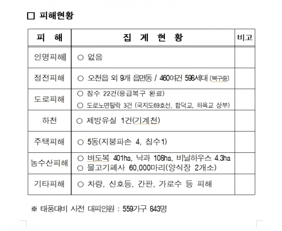 태풍 하이선 포항 피해 집계 현황 (9월 7일 15:00 잠정)
