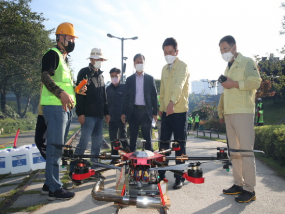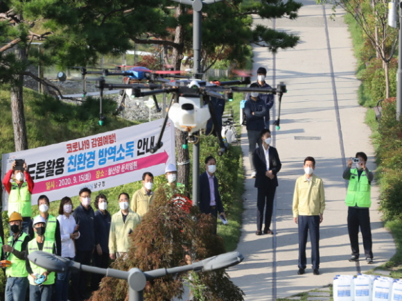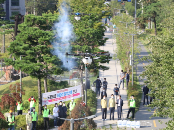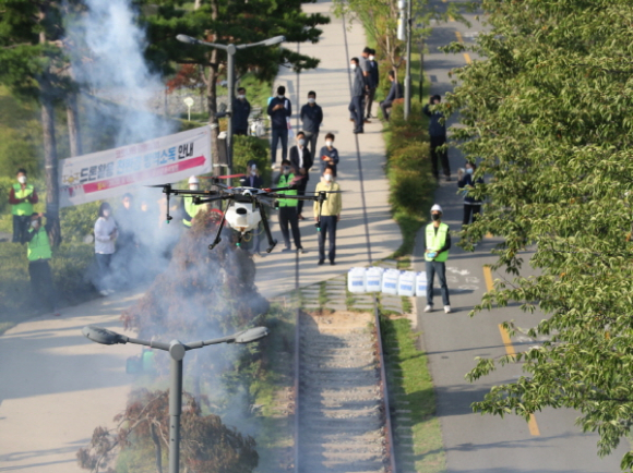 포항시, 농업용 드론 활용 ‘코로나19’ 방역 실시