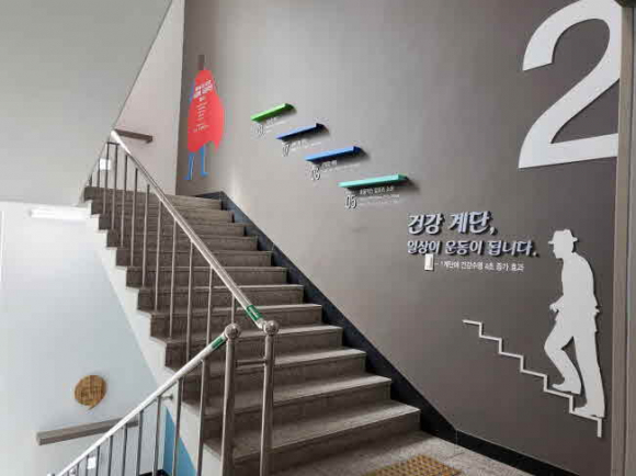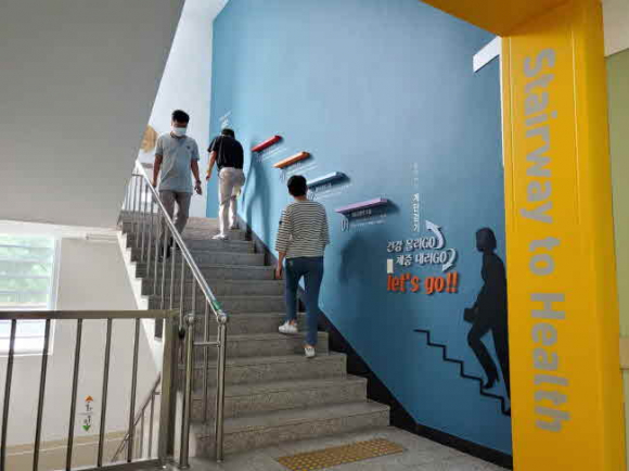 영양군(군수 오도창)은 신종 코로나바이러스 감염증으로 인한 사회적 거리두기 실천과 소소한 생활 속 걷기 활성화를 위한 환경조성을 위해 평소 군민들의 왕래가 많은 영양군보건소 내에 건강계단을 설치했다. 계단걷기는 짧은 시간에 근력운동과 유산소운동이 함께 이루어져 하체 근력 향상과 심폐기능을 강화해주는 운동이다. 또한 혈관 건강을 위협하는 4가지 요소인 허리둘레와 중성지방 수치를 줄여주고 혈압 및 혈당수치도 낮추어주는 효과가 있다. 건강은 올리고 에너지 사용은 줄이는 건강 콘텐츠를 통한 자발적인 계단걷기를 유도하기 위해 층별로 계단걷기의 건강증진효과와 신체활동, 금연 등 건강생활실천에 관한 정보를 부착하고 엘리베이터 이용 대신 계단걷기를 권유하는 안내문구도 함께 부착했다.