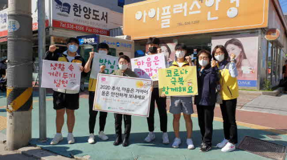 또, 유동인구가 많은 풍물거리에서 거리두기 실천, 몸은 멀지만 마음은 가까이, 함께 극복해요 등 다양한 문구가 새겨진 피켓으로 시장을 이용하는 사람들에게 코로나19 극복을 위한 개개인 실천의 필요성을 알렸다.
