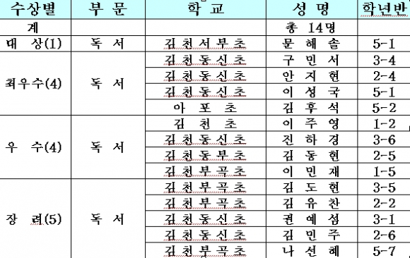 -경제신문대상 동신초6 김동석, 독서신문대상 서부초5 문해솔-