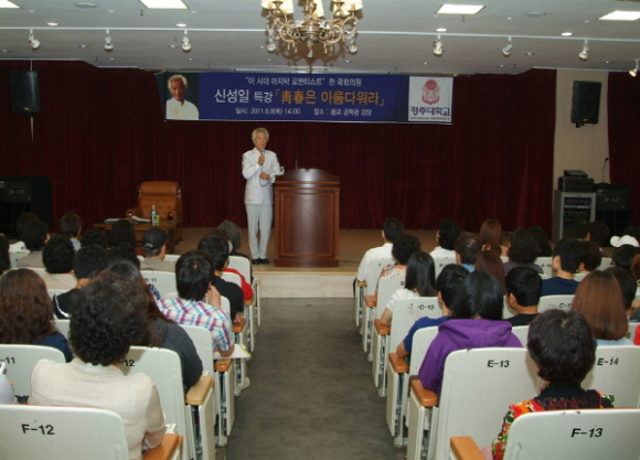 ● 신성일, 9일 경주대서 ‘청춘은 아름다워라’ 주제로 특별강연 ● 1960년 데뷔부터 2011년 백상예술대상 공로상 수상까지 영화인생 솔직담백 공유 ● 경북 영천에 영화박물관 건립 포부...문화·예술 지역 인재 양성 힘쓸 계획