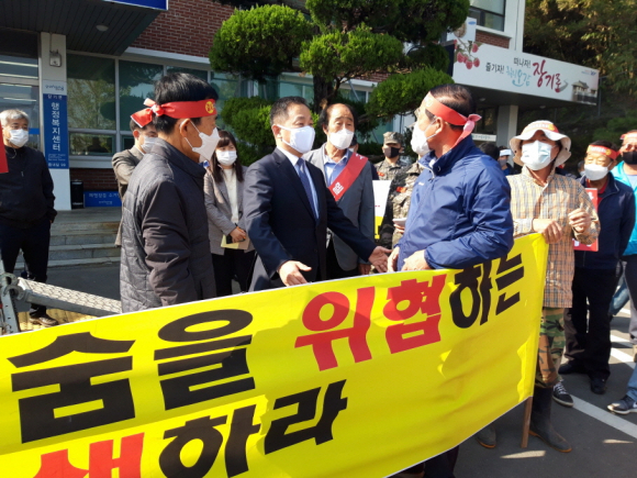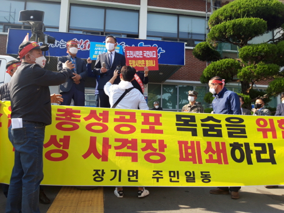포항 장기면민 거센 항의로 국방부 정책기획관 회의실 입장도 못해