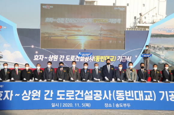 포항시와 경상북도는 5일 송도부두에서 효자~상원 간 도로 건설공사 기공식을 갖고 본격적인 공사를 시작했다.