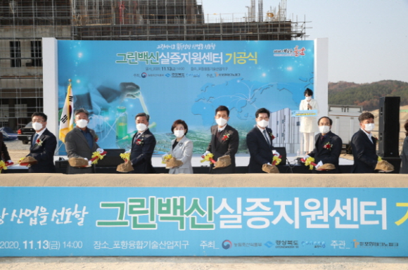 포항시는 지난 13일 포항융합기술산업지구에서 그린백신·그린바이오 산업 육성을 위한 ‘그린백신실증지원센터 기공식’을 개최했다.