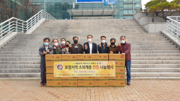 (사)대한한돈협회 포항지부는 18일 관내 무료급식소 및 사회복지시설에 전달해 달라며 한돈 400kg(300만원 상당)을 포항시에 기탁했다.