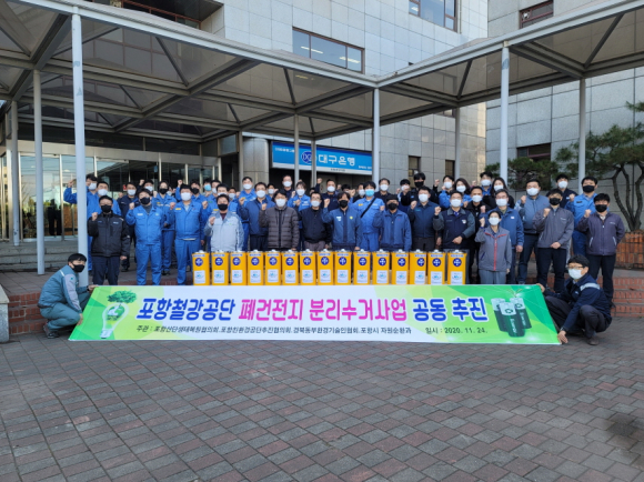 한편, 그동안 폐건전지 수거 및 재활용의 사각지대였던 철강공단의 친환경공단추진협의회와 경북동부환경기술인협회는 폐건전지에 대한 재활용을 촉진하고 자원순환 문화를 확산하는데 공단입주업체의 자발적 참여의 일환으로 폐건전지 수거함 100개를 설치하는 등 철강공단 내 홍보와 캠페인에 나섰다. |