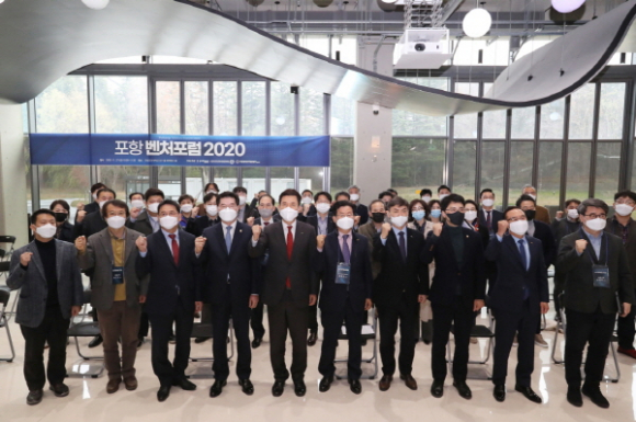 포항시, 포항창조경제혁신센터 및 포항 벤처밸리기업협의회가 주관하는 ‘제2회 포항 벤처포럼 2020’ 행사가 27일 포항창조센터(C5) 1층 컨퍼런스홀에서 개최되었다. 이날 행사에는 이강덕 포항시장을 비롯해 김병욱 국회의원, 정해종 포항시의회 의장, 김재동 상공회의소 회장, 박성진 포스코 산학연협력실장, 장영균 포항 벤처밸리기업협의회 회장 및 벤처기업 대표 등 50여 명이 참석했다.
