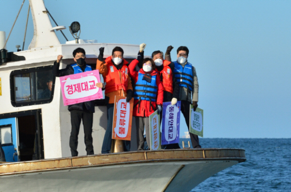 이날 행사에는 이강덕 포항시장과 김정재(북구)·김병욱(남구·울릉) 국회의원, 정해종 포항시의회 의장, 김희수 경북도의회 부의장 등이 참석했으며, 배를 타고 사업구간을 둘러보며 내년도 예산심의에서의 ‘동해안대교’ 사업비 확보 방안에 대해 논의했다.