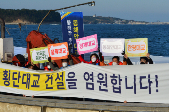 아울러, 시는 지난해 자체적으로 사업계획 적정성 연구 용역을 착수하여 경제성 향상 방안을 마련하는 한편, 교통량 재분석을 실시하는 등 10년 넘도록 답보상태인 ‘동해안대교’가 동해안고속도로의 핵심 구간이자 동해권역 관광·레저의 거점으로서 광역전략 산업벨트 구축을 위해 반드시 필요한 교량이라는 입장이다.