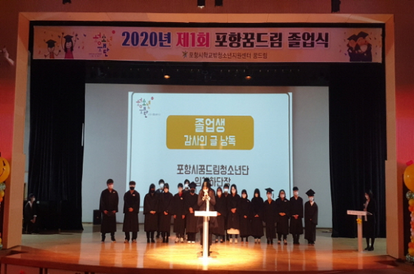 이날 졸업식은 청소년들이 그동안 꿈드림 센터에서 배운 다양한 자기계발 프로그램 발표회를 시작으로 경상북도청소년 정책제안대회에서 최우수상을 받은 꿈드림 청소년단의 시상과 함께 여성가족부장관상, 포항시장상, 포항시 문예창작 산문부 대상 시상식이 이어졌으며, 검정고시 학습지원단의 편지 및 졸업자의 감사 글 낭독으로 진행되었다.