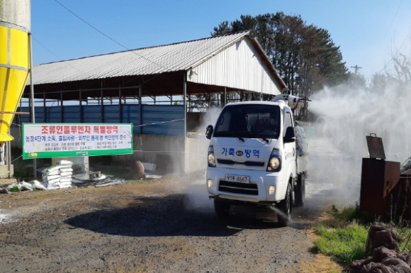 또한, 철새도래지인 형산강 주변, 흥해 성곡리 산란계 밀집사육단지, 취약지역 12개소에 대한 소독을 포항축협과 공동으로 펼칠 예정이다. 포항시 주상일 축산과장은 “농장주는 농장 4단계 소독 즉, 농장진입로 생석회 벨트 구축, 농장 마당 매일 청소·소독, 축사출입 시 장화갈아신기, 축사 내부 매일 소독을 이행하여 철저한 차단방역이 이루어질 수 있도록 신경을 써주시기 바란다.”라고 당부했다. |  | | | ⓒ GBN 경북방송 | |