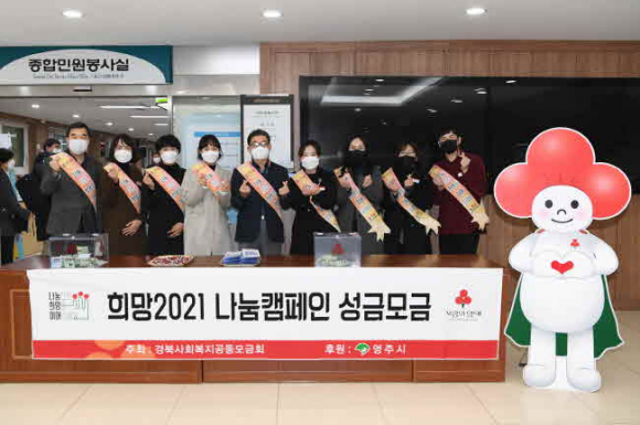 경북 영주시(시장 장욱현)는 지난 12월 1일부터 내년 1월 31일까지 62일간 ‘나눔으로 희망을 이어주세요’라는 슬로건으로 ‘희망 2021 나눔 캠페인’을 실시한다. 이에 따라 지난 12월 1일 영주시청 직원들의 자발적인 기부를 시작으로 전 시민의 참여 확산을 위해 ‘희망 2021 나눔 캠페인 사랑의 열매달기’ 행사를 진행했다. 특히 올해는 ‘코로나19’로 인해 가두캠페인 등이 어려워 언택트 트렌드를 반영한 포스터 및 지역별 홍보물에 QR코드를 사용해 비대면 모금활성화를 적극 활용할 계획이다.
