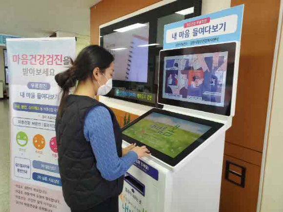 김천시는 12월 9일 김천시 보건소 1층 로비에 ‘무인 정신건강검진 시스템’을 설치하여, 정신건강 자가검진서비스를 제공하고 있다.