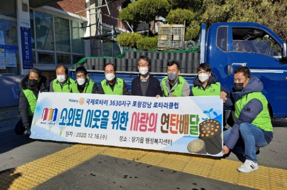 포항강남로타리클럽은 16일 장기면행정복지센터에 소외되고 어려운 가구를 위해 연탄 1,000장과 전기장판 7개를 전달했다