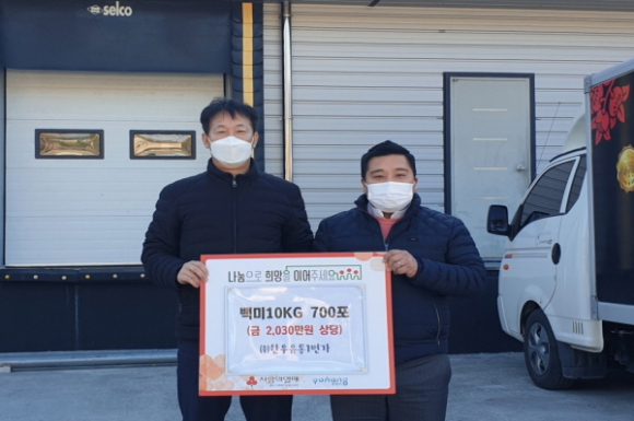 백미를 기탁한 최형철 대표는 “추운 겨울 어려운 이웃들에게 따뜻한 밥 한 끼 대접한다는 마음으로 기부하게 되었다.”고 말했다.