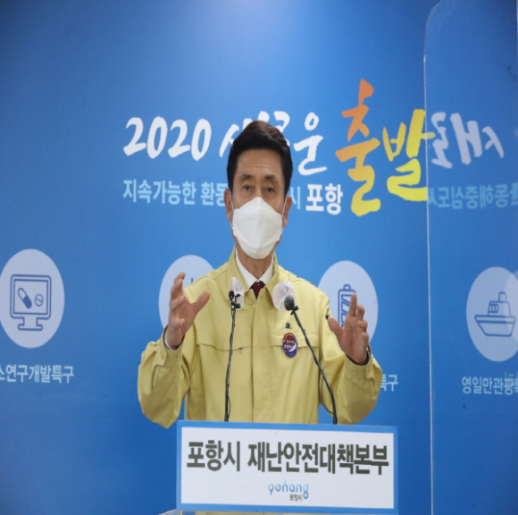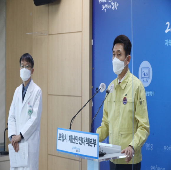 |  | | | ↑↑ 이강덕 포항시장이 21일 시청 브리핑룸에서 ‘의료체계 및 방역대응 강화’ 기자회견을 하고 있다. | | ⓒ GBN 경북방송 | |