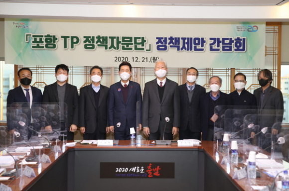 포항시는 21일 포항시청 중회의실에서 이강덕 포항시장과 관련 부서장 및 포항 TP 관계자들이 참석한 가운데 ‘포항 TP 정책자문단 정책제안 간담회’를 개최하였다. ‘포항 TP(포항테크노파크) 정책자문단’은 정무영 前 UNIST(울산과학기술원) 총장(포스텍 명예교수)을 단장으로, 포스텍, 한동대, RIST 등 지역 R&D기관의 퇴직인력을 중심으로 26명으로 구성되었으며, 포항시와 포항TP의 주요 정책과제를 제안하기 위해 지난 6월 발족하였다.