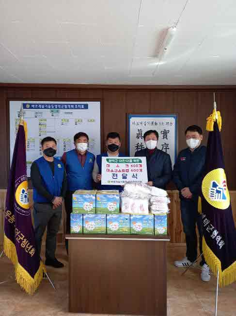 바르게살기운동 영덕군청년회(회장 김철규)가 지난 22일 연말을 맞아 관내 어린이집 12개소에 마스크와 마스크 스트랩 각 600개를 전달했다.