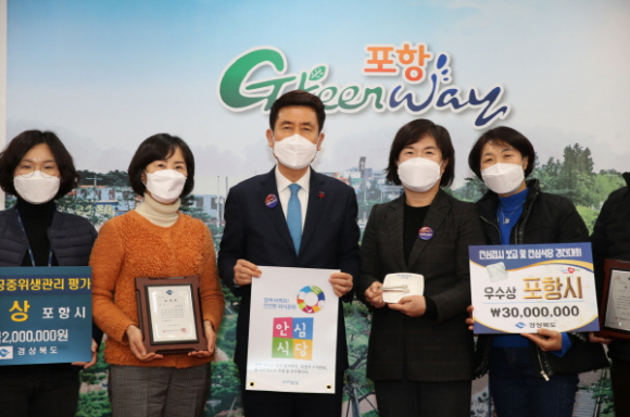 |  | | | ⓒ GBN 경북방송 | | 포항시가 경상북도가 주관한 2020년 식품‧공중위생관리 평가에서 ‘대상’을, 안심식당 지정 평가대회에서 ‘우수상’을 수상하였다.