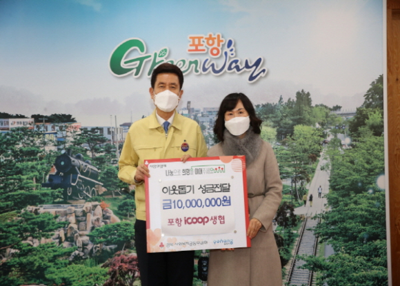 포항 아이쿱 소비자 생활협동조합은 12월 29일 성금 1,000만원을 이웃돕기 성금으로 포항시에 기탁했다.