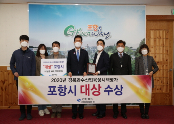 |  | | | ↑↑ 포항시는 29일 경상북도에서 주관하는 ‘2020년 경상북도 과수산업 육성시책 평가’에서 ‘대상’을 수상했다고 밝혔다. | | ⓒ GBN 경북방송 | |