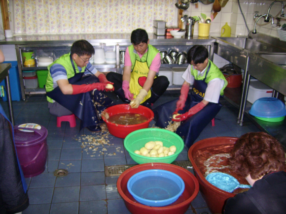 한국농어촌공사 경주지사(지사장 차한우)는 28일 무료급식소 ‘이웃집’을 방문하여 무료급식도우미에 나서 다른 자원봉사자들과 함께 점심식사 재료를 손질하고, 배식, 설거지 등 궂은 일에도 묵묵히 참여하면서 일일 급식도우미로 이웃사랑을 실천하였다.