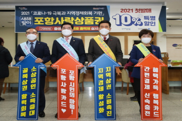 이강덕 포항시장은 “2021년 한 해는 침체된 소비심리 회복과 소상공인 자립기반 조성을 위하여 포항사랑상품권 연중 10% 특별할인행사를 계속 늘려 나감과 동시에 서민경제 위기의 선제적 대응책인 지역화폐 활성화로 포항 경제살리기에 총력을 다하겠다.”라고 말했다.