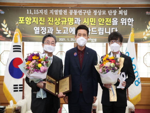 이강덕 포항시장은 “지난 3년 동안 지역사회에 대한 깊은 애정과 관심으로 포항지진의 진상규명과 시민의 안전을 위해 적극 노력해주신 두 분께 감사드린다.”라며, “향후에도 포항지진에 대한 지속적 관심과 다양한 연구를 부탁드린다.”고 말했다.