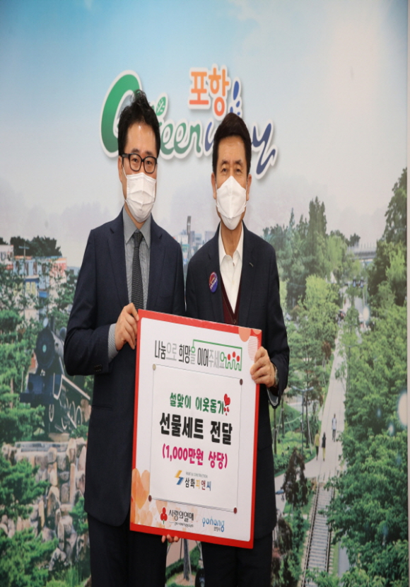 ㈜삼화피앤씨(회장 손위혁)는 설 명절을 맞이하여 3일 포항시청을 방문해 사랑의 설맞이 선물세트 45박스(1,000만 원 상당)를 전달했다.