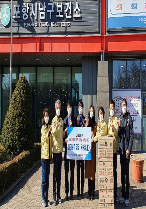 포항시 약사회(약사회 회장 김진)는 2일 포항시치과의사회와 한의사회와 함께 코로나19로 선별진료소를 운영 중인 남·북구보건소를 방문하여 홍삼음료 30박스와 영양제를 제공하였다.