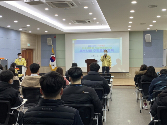 김천시(시장 김충섭)에서는 2021.1.20.(수) 농업기술센터에서 『과수산업육성실무위원회』를 개최, 2021년도『FTA기금 과수 고품질생산 시설현대화사업』 대상자를 확정하고, 2. 8(월) 16:00에 읍면동 및 참여조직 담당자에 사업추진 요령에 대한 교육을 실시하였다.