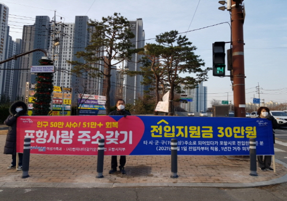 이 캠페인은 지난 1월 25일부터 시작하여 7회째 계속되고 있으며, 특히, 타 시군구에 1년 이상 주소를 두고 있다가 포항시로 전입한 시민들에게 전입신고 1개월 후에 30만 원을 포항사랑상품권으로 지급하는 주소이전 지원금에 대해 홍보활동을 펼쳤다.