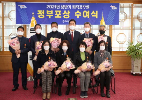 정부포상을 전수한 이강덕 포항시장은 “30여년이 넘는 긴 시간 동안 지역사회 발전과 주민복리 증진을 위해 기여한 노고에 진심으로 감사드린다.”며, “정든 공직을 뒤로하고 새로운 삶의 전환을 맞이한 퇴임자분들의 앞날에 행복이 가득하길 기원하고, 앞으로도 시정 발전을 위해 애정 어린 관심으로 지켜봐 주시고 아낌없는 성원을 당부 드린다.”라고 말했다.
