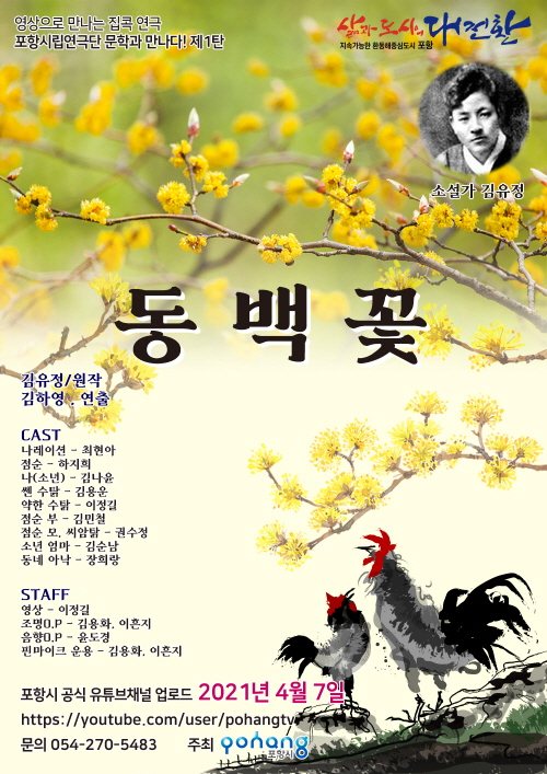 포항시립연극단은 지난해 비대면 정기공연 ‘유랑극단’과 낭독극 ‘목걸이’에 이어, 올해는 영상으로 만나는 집콕 연극, 제1탄 ‘동백꽃’과 제2탄 ‘운수 좋은 날’ 2개 작품을 17일, 18일 영상으로 제작해 4월 7일, 8일 포항시 공식 유튜브 채널을 통해 비대면 온라인 공연으로 관객들을 만나고자 한다.