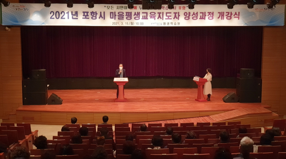 |  | | | ⓒ GBN 경북방송 | | 포항시는 15일 뱃머리 평생학습원 대강당에서 80여 명의 수강생을 대상으로 ‘2021년 포항시 마을평생교육지도자 양성과정 교육’ 개강식을 가졌다.
