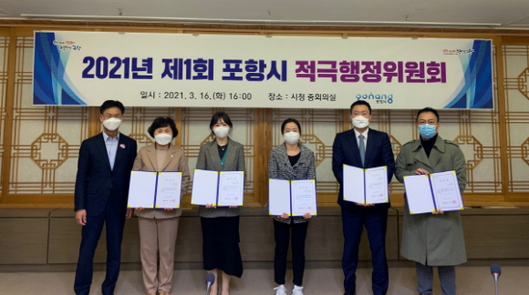 이날 첫 회의에서 시는 분야별 자문 역할을 수행할 민간위원 6명에게 위촉장을 수여했으며, 2021년 포항시 적극행정 실행계획(안) 외 2건의 안건에 대해 심사를 진행했다.