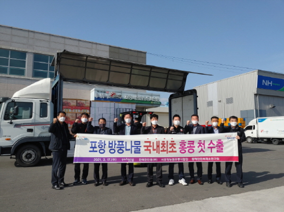 포항시는 17일 동해안민속채소연구회(대표 성영국)에서 재배해 국내 최초로 홍콩 수출 길에 오르는 ‘방풍나물’ 상차식을 가졌다.