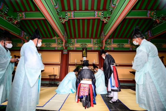영덕향교(전교 신성수)와 영해향교(전교 이혁희)는 지난 20일 오전 10시 각 향교 대성전에서 지역 유림 30여명이 참석한 가운데 춘계 석전대제(釋奠大祭)를 봉행했다. 영해향교에서는 초헌관 이희진 군수를 비롯해 아헌관 박광수, 종헌관 권병윤 유림이 헌관으로 참여해 옛 성현들의 뜻을 기렸다. 금번 춘계석전제는 코로나19로 인해 규모를 최소화해 방역수칙을 준수하며 간소하게 진행됐다. 봉행은 초헌관이 향을 피우고 폐백을 올리는 ‘전폐례(奠幣禮)’를 시작으로 초헌례,아헌례,종헌례,분헌례,음복례등의 순서로 진행했다.