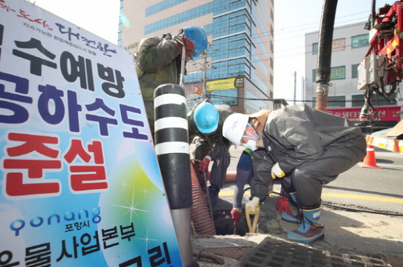 또한, 포항시 하수도과에서는 매년 준설뿐만 아니라 하수관로의 CCTV 내부촬영을 실시해 관로 내의 나무뿌리 제거 및 노후 하수관의 개체 공사 등으로 침수 방지와 더불어 씽크홀 방지 등 시민의 생명과 재산을 보호하는 데 최선을 다하고 있다.