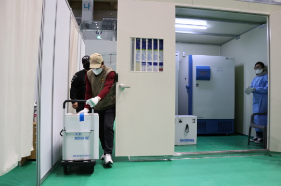 화이자 백신은 중간 물류센터를 거치지 않고 이날 오후 포항 등 전국 접종센터 22곳으로 배송됐다.
