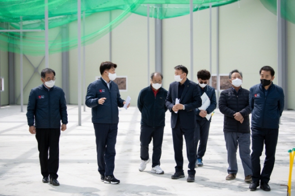 영덕군이 야심차게 추진 중인 ‘영덕 농축산물 유통단지 조성사업’이 순항하고 있다. 현재 공정률이 기반조성 80%, 농산물산지유통센터(APC) 50%를 넘어섰다. 부지 조성은 오는 4월 말, 농산물산지유통센터는 5월 말 완공 예정이다. 영덕읍 남산리 일원에 총 60억의 사업비(유통단지 19억, 농산물산지유통센터 41억)가 투입되는 이번 조성사업은 농축산물 생산부터 소비, 유통까지 3박자를 모두 갖춘 종합 농업단지다. 이희진 영덕군수는 지난 24일 사업 현장을 찾아 지역 농업인, 관계 공무원과 사업 진척 상황을 점검했다. 이 자리에서 이 군수는 농업인과 소비자들의 불편함이 없도록 사업 추진과정에서 충분한 의견 수렴 절차를 거치도록 지시하기도 했다. 특히 농산물산지유통센터가 기대를 모은다. 농림축산식품부 주관 건립지원 국비공모사업에 선정돼 총 41억 원(국비 16억 포함)이 투입되는 농산물산지유통센터는 연면적 2천331㎡, 연 최대 취급물량 8천 톤 규모를 자랑한다. 8천 톤 규모는 영덕군 사과 생산량의 80% 규모로 산지유통센터가 준공되면 영덕 능금농협에서 사과 및 복숭아 매취사업을 실시해 농가 일손부족 해소는 물론 농산물 집산화로 물량 확보도 쉬울 것으로 전망된다. 이렇게 되면 농산물 유통시장에서 우위를 점할 수 있어 농가소득 증대에도 크게 기여할 것으로 보인다.