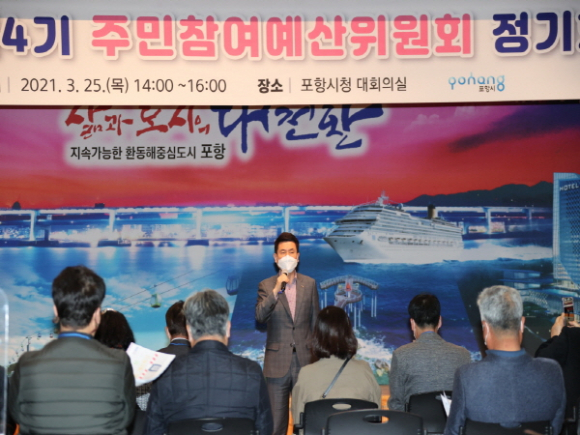포항시가 25일 주민참여예산위원회 위원 31명이 참석한 가운데 ‘2021년 제1차 주민참여예산위원회 정기회의’를 개최했다.