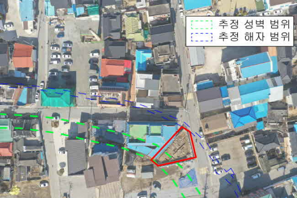 조사 대상지가 일제 강점기(1913년)에 제작된 지적도에 성도(城道)로 표시된 부분에 해당함을 현재 지적도와의 비교를 통해 확인했고, 바로 이 자리가 상주읍성의 북동쪽 성벽임을 이번 발굴조사를 통해 밝혀냈다.