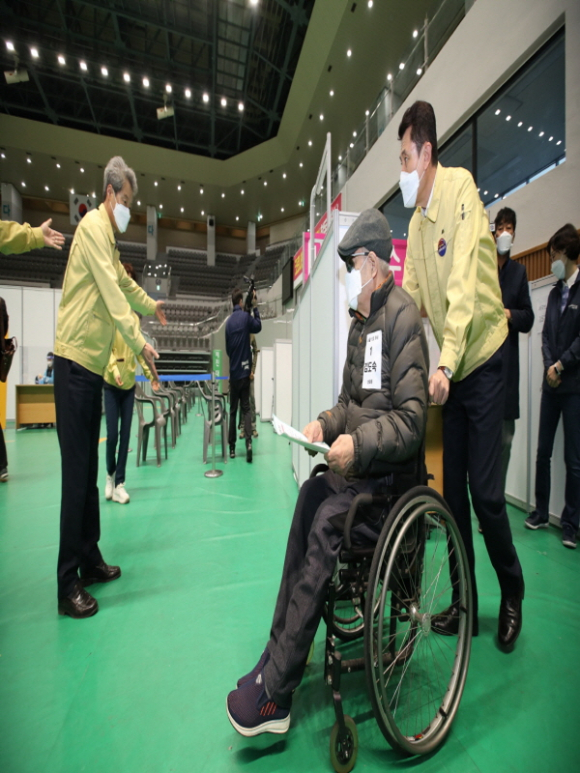 이날 포항시 남구 상대동에 거주하는 김도숙(79) 어르신이 처음 접종받는 것을 시작으로, 이미 확보된 화이자 백신 4,095명 분을 코로나19 포항시 남구 예방접종센터(포항시 남구 희망대로 810, 포항체육관)에서 75세 이상 어르신과 노인시설 입소자, 종사자들을 대상으로 순차적으로 접종을 실시한다.