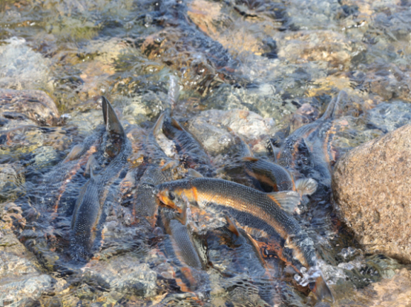 <사진물 기사> 물살 가르며 하천으로 올라오는 황어 떼